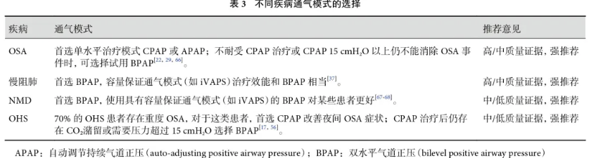HNIV适用于各种原因导致的通气功能障碍的患者,如:OSA【高质量证据,强推荐】、慢阻肺【高/中质量证据,强推荐】、肥胖低通气综合征(obesity hypoventilation syndrome,OHS)【中/低量证据,强推荐】及NMD【低质量证据,强推荐】等。