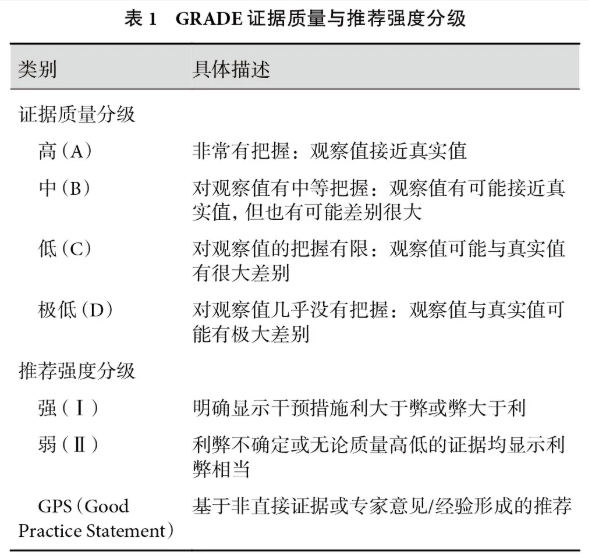 根据《中华医学杂志》发表的《中国制订/修订临床诊疗指南的指导原则(2022版)》对本共识进行制定[7]。对HNIV相关性较高的指南、共识和文献进行评价,以推荐意见分级的评估、制订及评价(Grading of Recommendations Assessment,Development and Evaluation,GRADE)的方法为指导,对证据质量和推荐意见的强度进行分级,最终通过德尔菲法形成推荐意见分级。GRADE证据质量和推荐强度分级的含义见表1。
