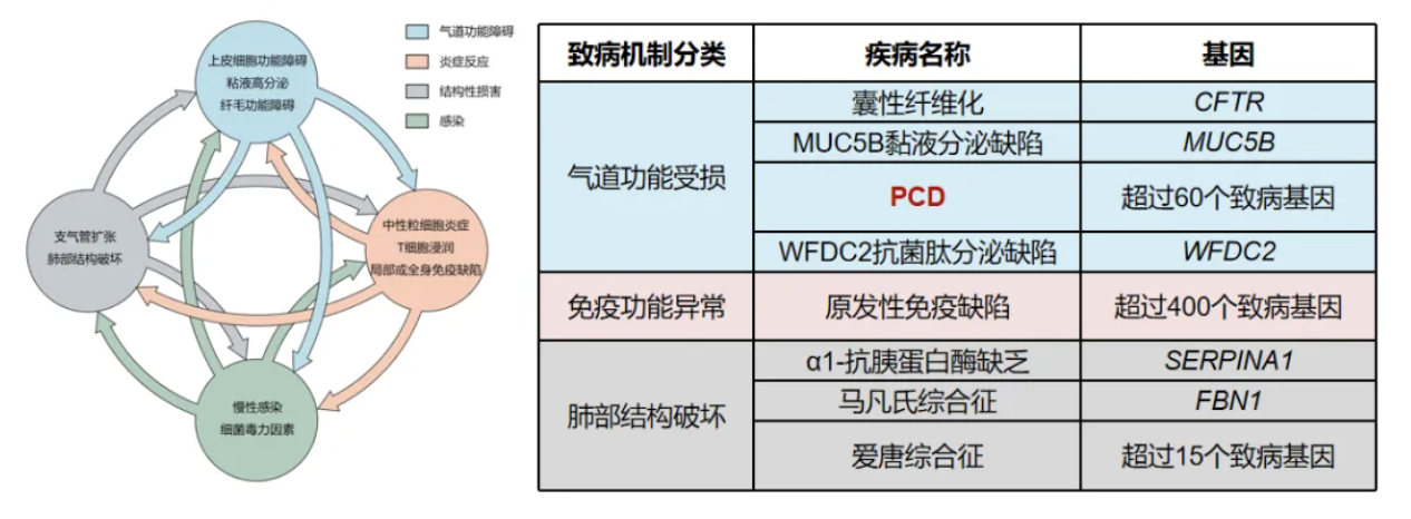 这是鉴别诊断遗传性支气管扩张症分类。对于PCD有超过60个致病基因[16]。