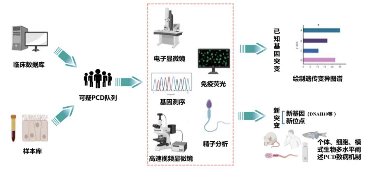 针对可疑人群的筛查,本团队致力于制定适用于我国的PCD诊疗流程,并旨在通过多种手段检测已知基因的突变,进而绘制遗传变异图谱。同时,我们可发现新基因及新位点;例如,本团队已识别出若干新基因与新位点。为证实新位点确属新发现,需通过个体细胞模型的多层次分析,阐明PCD是否表现其机制,并通过多个家系进行验证。鉴于原发性纤毛运动障碍大多为常染色体隐性遗传的单基因疾病,故围绕其作为遗传病的特性,尽管遗传病常被视为先天性疾病,但后天因素亦可引发基因改变。
