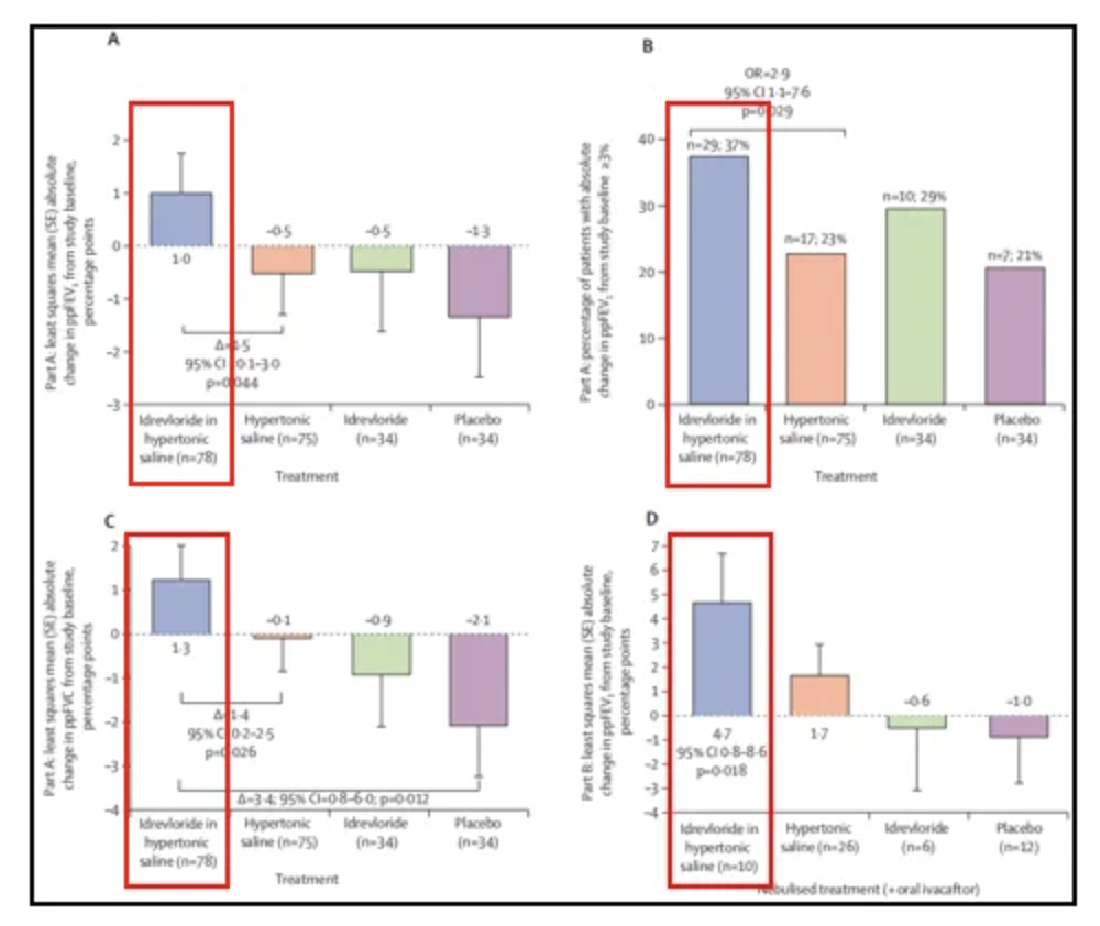 PCD治疗上的老药新用,Idrevloride:上皮钠通道阻滞剂,拮抗钠离子内流,提高胞外渗透压。高渗盐水与上皮钠通道阻滞剂idrevloride合用较单独使用高渗盐水在28天内对PCD患者的肺功能改善作用更加明显,且不会增加安全风险[24]。