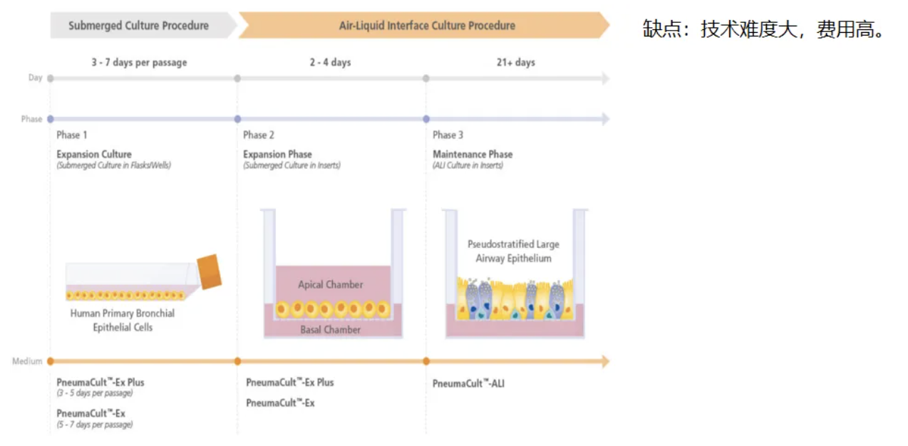 气液交界(Air-Liquid Interface, ALI)培养,通过将患者鼻粘膜或者支气管粘膜的细胞进行ALI培养,在实验室环境下进行,排除空气污染、慢性感染和炎症性损伤等继发性因素影响,可以排除部分继发性MCD,经ALI培养的细胞同样可以进行HSVA、TEM、IF等检查。