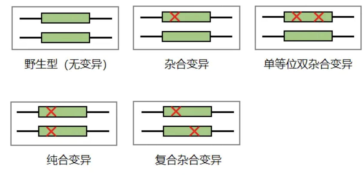 ③双等位变异。人有2个等位基因(一个来自母亲,一个来自父亲)。只有2个等位基因均携带致病基因的致病性变异才会导致疾病(常染色体隐性遗传)。注:双重杂合变异,区分单等位还是双等位(复合杂合)只能通过父母或者子女进行验证,若2个变异分别来自父亲和母亲则为双等位,若2个变异均来自其中一方则为单等位。