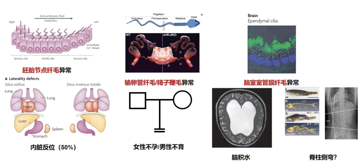 年长的DNAI1敲除猪可观察到明显的肺部炎症表现与黏液聚积。猪气道解剖和生理学与人类更相似,PCD猪动物模型可以出现明显的上下气道疾病表型,为PCD机制研究与靶向治疗探索提供一个新途径[27]。