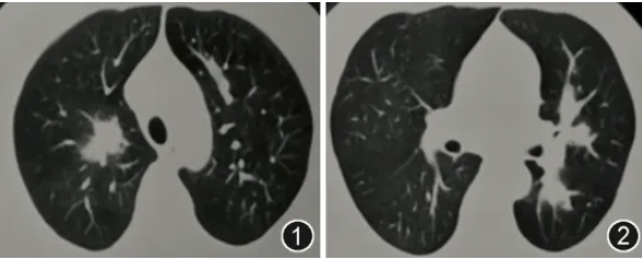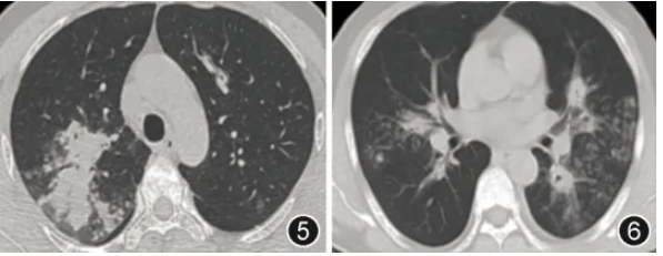 图1,2 2025年1月4日胸部CT示双肺散在斑片影