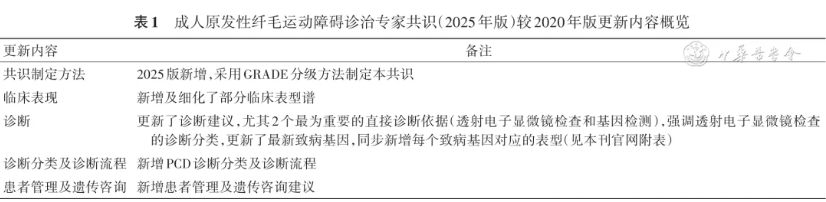 中华结核和呼吸杂志《成人原发性纤毛运动障碍诊治专家共识(2025年版)》编写组