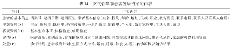 哮喘患者健康档案的内容见表14。