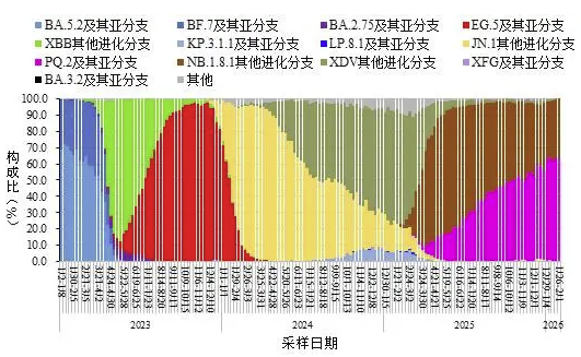 最新丨中疾控:新冠病例数低位波动增加、流感样病例新冠阳性率低位小幅增加;NB.1.8.1及其亚分支占比分别为100.0%