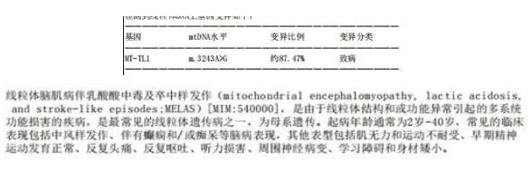 线粒体脑肌病伴乳酸血症和卒中样发作(MELAS),是由于mtDNA或核DNA突变,引起线粒体呼吸链氧化磷酸化结构和功能障碍为特点的一组遗传代谢疾病。以卒中样发作、癫痫样发作、身材矮小、心肌病、糖尿病、高乳酸血症、肌肉疲劳无力为主要临床特点。是线粒体脑肌病中最常见类型。多为母系遗传。[1]