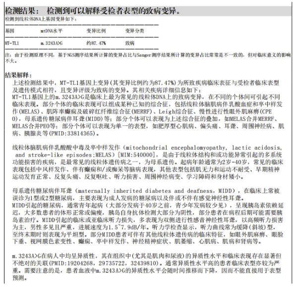 诊断:线粒体脑肌病伴乳酸血症和卒中样发作(MELAS)。至此,明确诊断为: