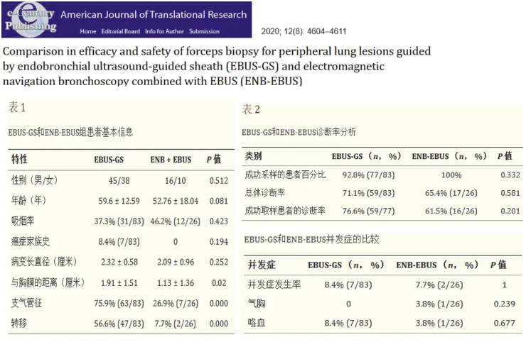 图示研究纳入100余例病例,显示TBCB诊断率较高,风险相对较低。经支气管镜活检阳性率最低,外科胸腔镜阳性率最高,但创伤较大。经支气管镜机器人肺活检诊断率约为80%,取材越多阳性率越高。此外,EBUS-GS 可用于引导TBLB,在细支气管内通过超声引导,减少误差,明确病变位置进行活检,尤其适用于较小病变。