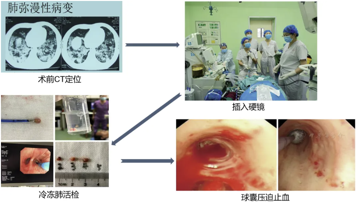 TBCB主要用于弥漫性病变,通常应在硬质支气管镜下操作,软镜下操作风险较大。术中应预置球囊做好止血准备。对于肺部病变的诊断,主要有三种方法:外科胸腔镜、经支气管镜活检和TBCB。
