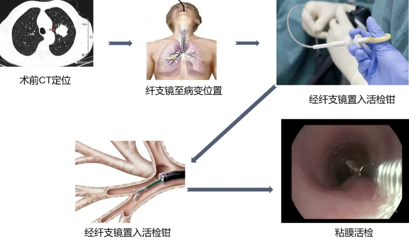 首先,黏膜活检是非常简单或基础的操作技术,针对支气管腔内进行的活检术,对支气管镜下所见或影像学指导下的粘膜病变或肿物进行钳检,活检部位应取镜下黏膜异常部位,通常取4~6块组织标本,也有取3~4块的情况。