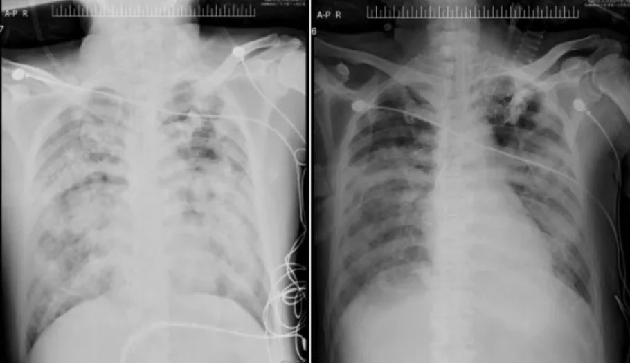 图2 患者治疗前后胸片对比