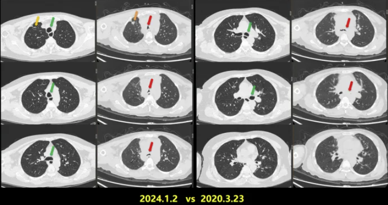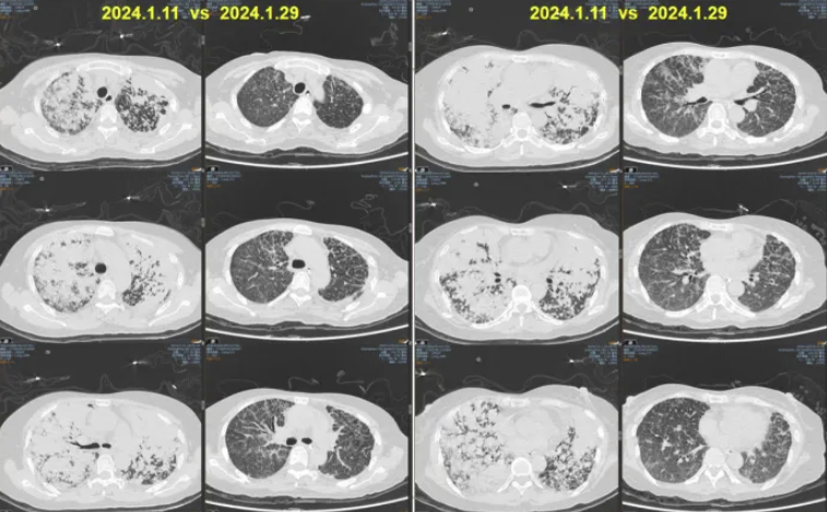 图13 治疗前后胸部CT对比