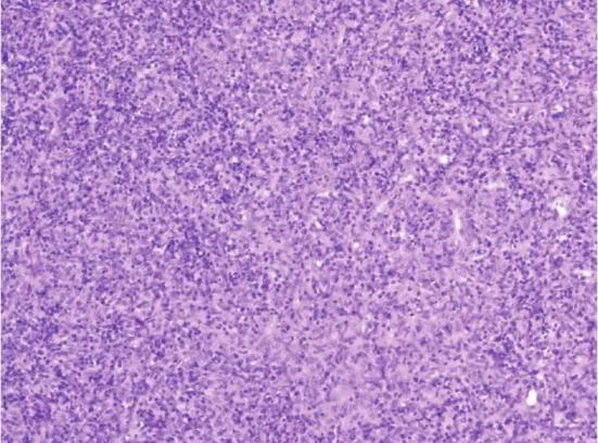 图2 纵隔肿物病理像(HE×100)
