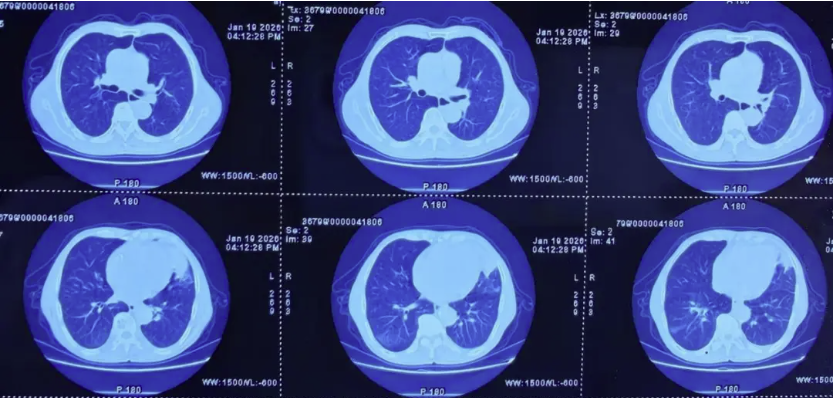 图片1:2026年1月19日当地市人民医院胸部CT示两肺感染可能,双肺多发小、微结节,心包、左侧胸腔少量积液。