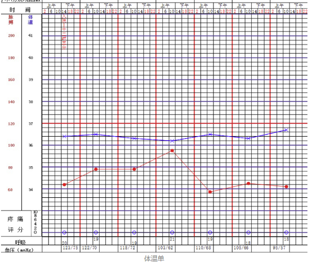 4、入院查体:T:36.4℃,P:64bpm,R:20bpm, BP:123/75mmHg;未吸氧下氧饱和度96%,一般情况可,神清,查体合作,对答切题,眼睑结膜无充血水肿,口唇及全身皮肤粘膜无发绀,无皮肤黄染及出血点,颈静脉无充盈;双肺呼吸音清,双肺未闻及干、湿啰音,心界无扩大,心率64次/分,律齐,各瓣膜听诊区未闻及病理性杂音;腹平软,无压痛、反跳痛及肌紧张,肝脾肋下未触及肿大,肝颈静脉回流征(-),移动性浊音(-),肠鸣音4次/分;双下肢无水肿,生理反射存在,病理反射未引出。