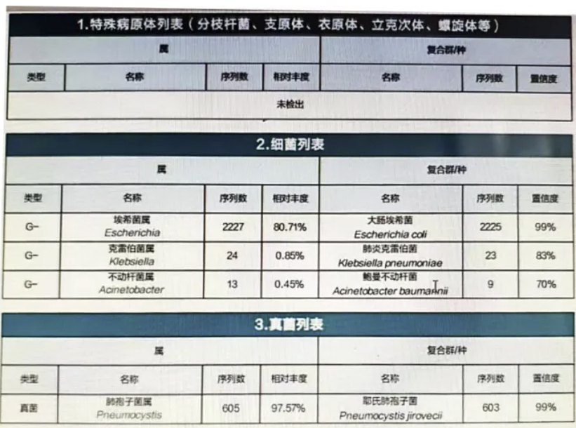图2. 支气管肺泡灌洗液宏基因组二代测序结果