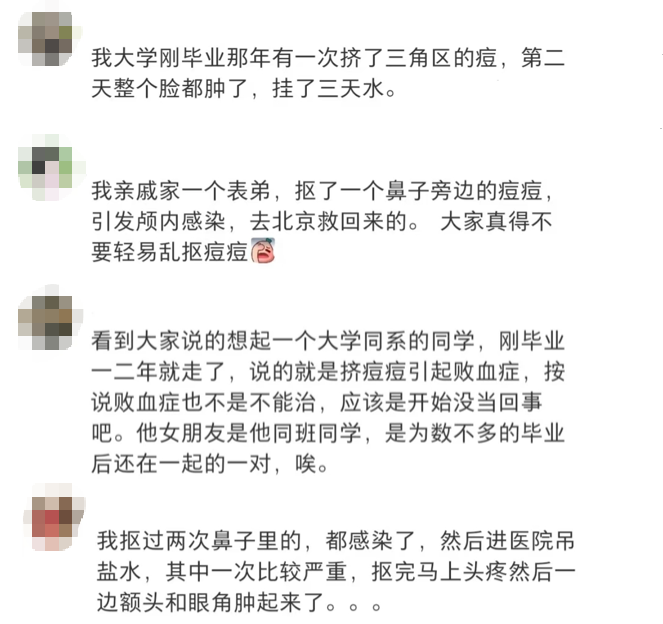 脸上冒出痘痘,很多朋友总忍不住“不挤就手痒”的冲动,但请注意,千万不要在面部的“危险三角区”随意下手。最近,20岁的小林(化名)随手挤了一颗痘痘,肺竟被啃出十多个空洞,因败血症和肺脓肿足足住院治疗了近两周!