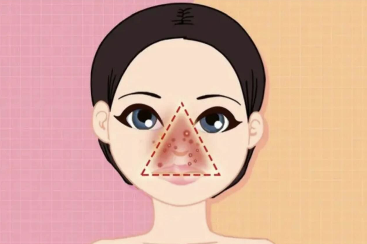 我们的面部存在一个特殊的「危险三角区」,它是由鼻梁根部与两侧口角这三个点连接所构成的三角形区域。这个区域的静脉血管缺少能够防止血液逆流的静脉瓣,正是由于缺少这重‘单向阀门’的保护和阻拦,进入血管的细菌得以畅行无阻,随血流四处扩散。