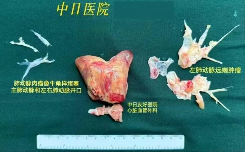 现年41岁的王先生(化名)前不久被推进手术室,在全麻下由心脏血管外科医生行“肺动脉血栓内膜剥脱术+肺动脉修补术”,此时他的肺动脉已被“牛角样”的占位堵得十分狭窄,心包腔内有中量心包积液,心脏青紫胀大。手术中,在体外循环支撑下、心脏停跳的20余分钟,医生完整剥脱了肺动脉内的占位,从“鬼门关”将他救了回来。肺动脉占位病理显示为“梭形细胞肿瘤,恶性肿瘤倾向”。术后,王先生被转入了外科ICU。